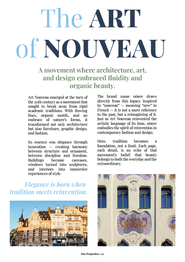 Stripped of ornament, reimagined in minimal form, nóuve stands not as a replica of history, but as its redefinition