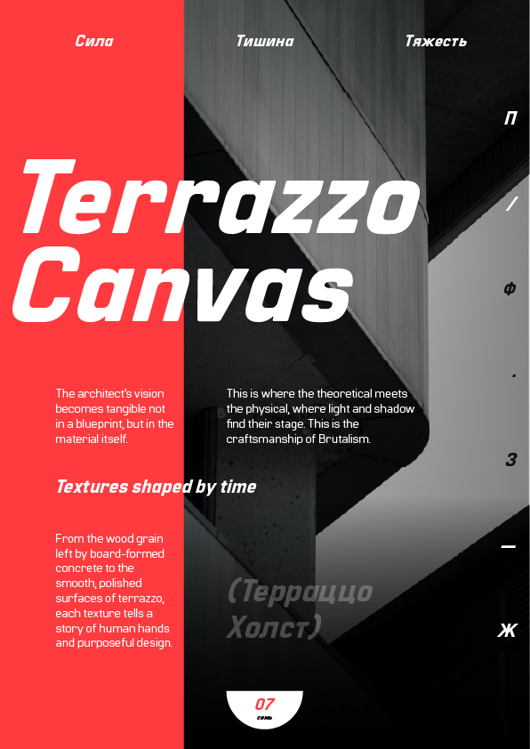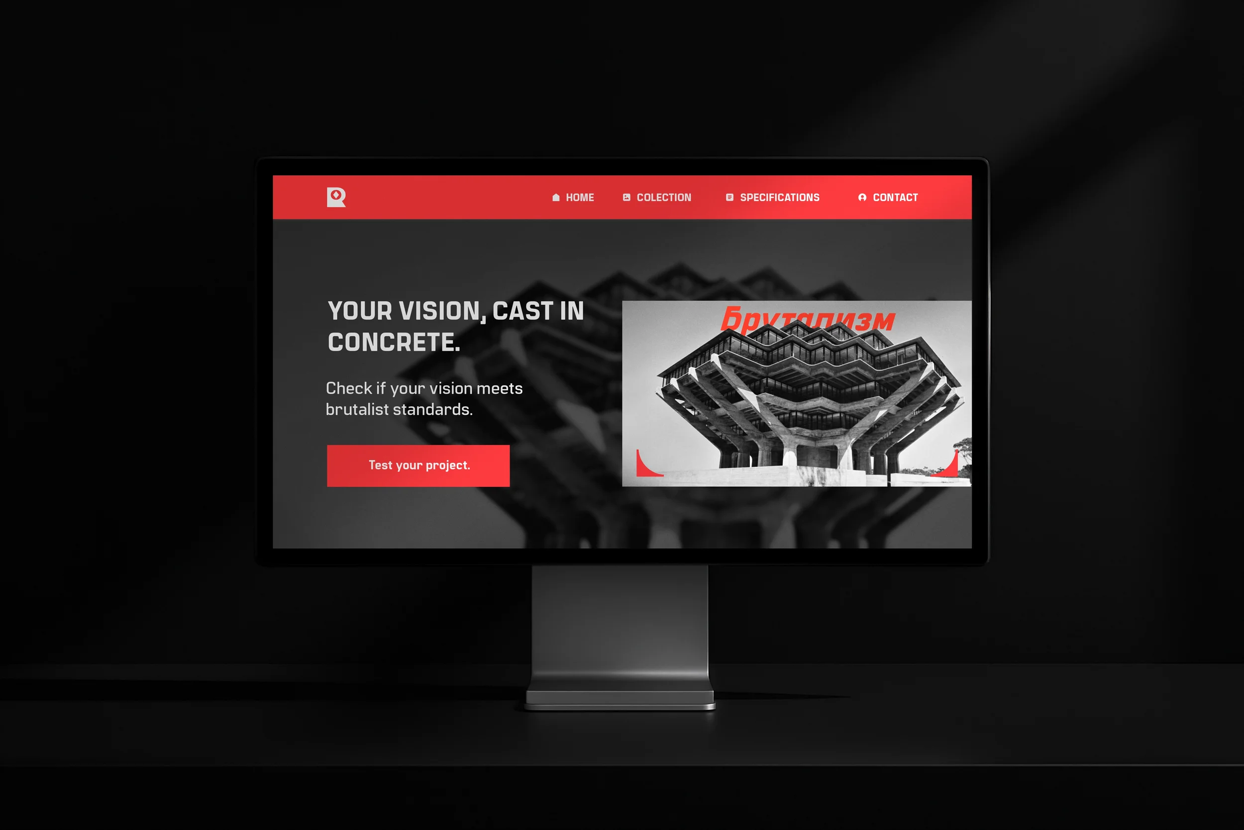 Every element—from the logo to the palette—echoes the weight of architecture.